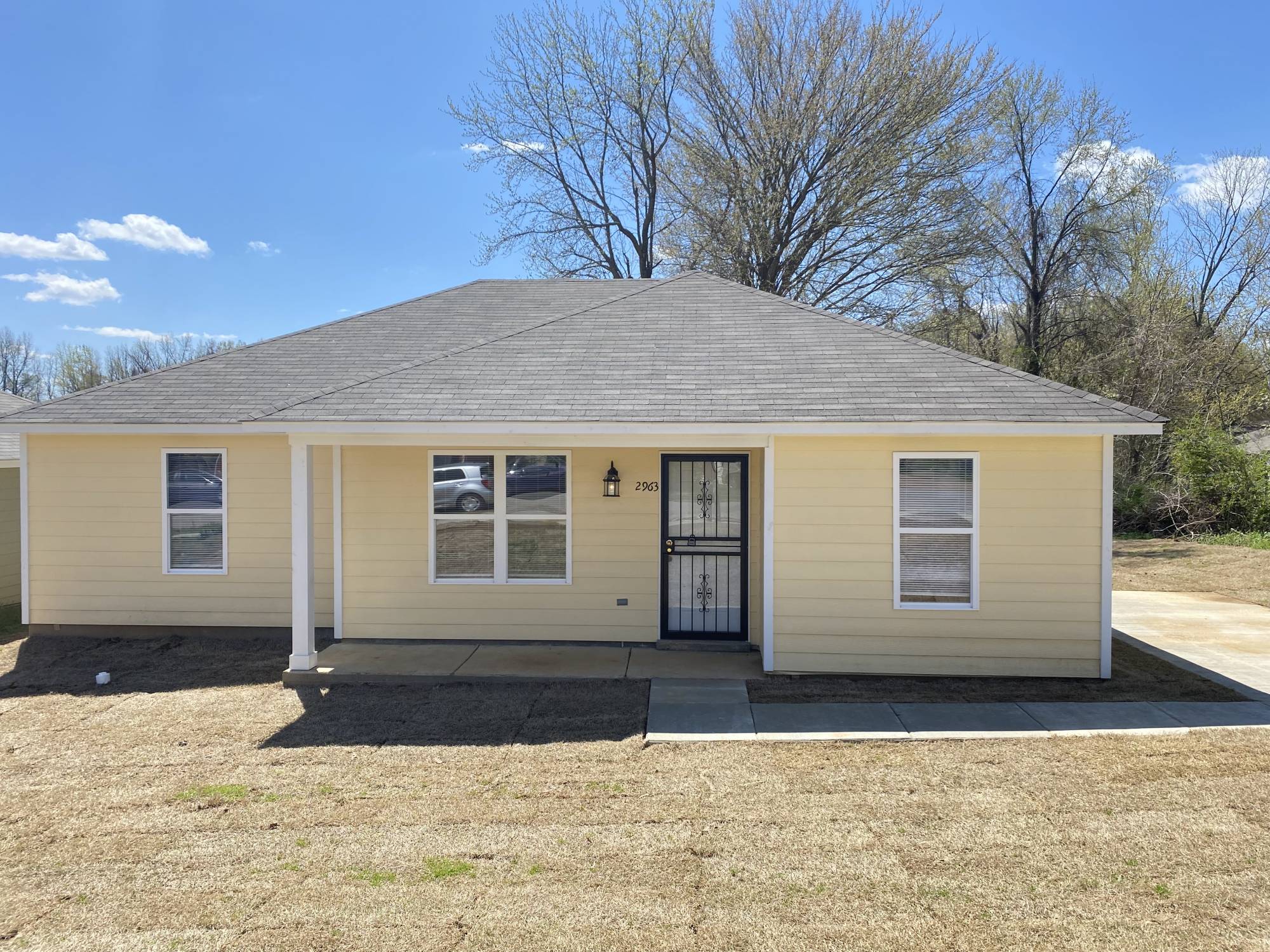 Come see this Brand new property! All NEW EVERYTHING from the ground up!! Fresh interior & exterior paint, concrete scored flooring, bathroom and kitchen cabinets and countertops and appliances. Large living area, great kitchen storage, good-sized bedrooms each with closets, lots of natural light, and hook-ups for laundry. Large driveway and large grass-covered front and backyards. Renter is responsible for ALL utilities. First months rent and security deposit due at signing.NO PETS ALLOWED!
